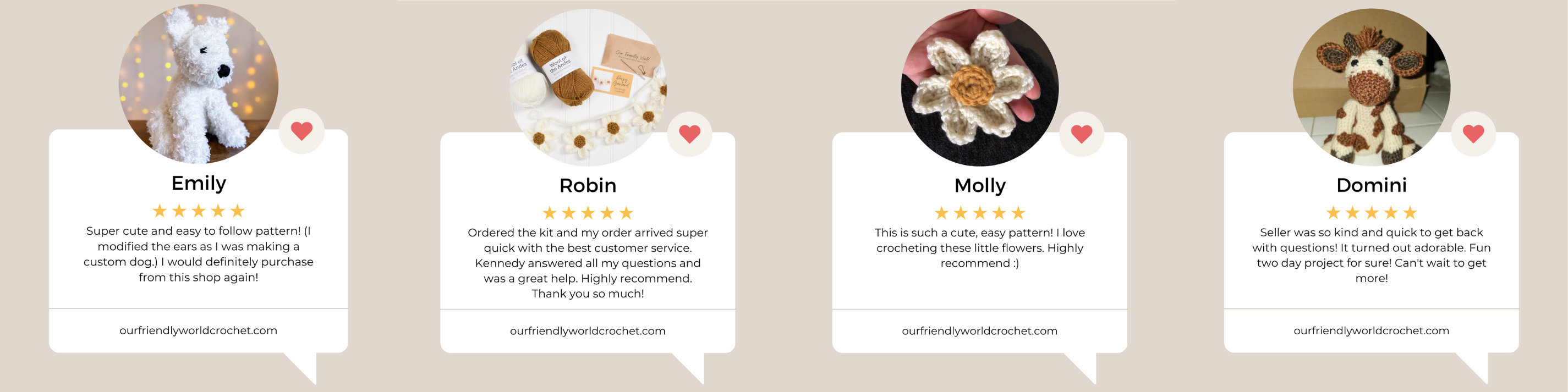 Join Our Friendly World's Email List and receive your FREE Learn to Crochet Video Guide! 🧶 When you complete the step-by-step video guide you will have the knowledge and skills to confidently crochet using your favorite patterns. Plus you'll receive an exclusive discount for your first pattern purchase from Our Friendly World! 😊