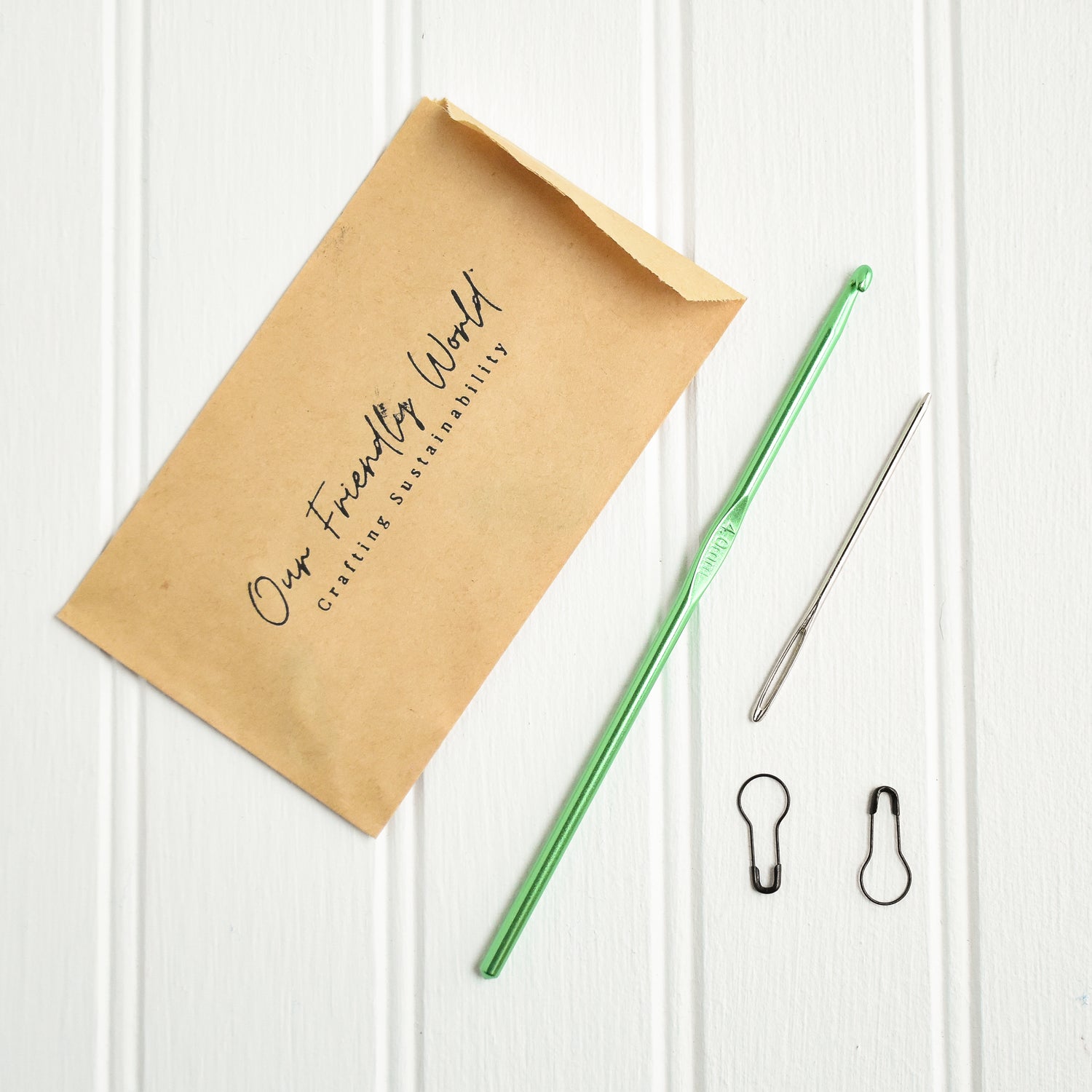 The crochet hook, darning needle and stitch markers included in your crochet kit are all made of aluminum. This way your tools are sturdy and reliable, and don't contribute to plastic waste!